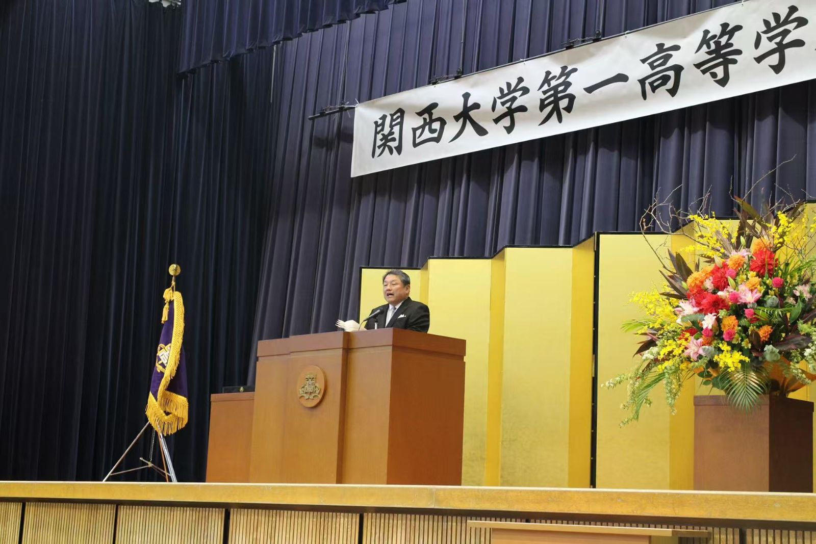 毕业生代表浦上知之同学在发言中,满怀感激地回顾了三年来的点滴成长。他深情地说道:“这三年里,我不仅通过自己的努力和行动获得了成长,更得益于学校提供的宝贵机会和优越环境。希望学弟学妹们也能在关西大学第一高中这片沃土上,勇敢迈出第一步,抓住每一个机会,书写属于自己的精彩篇章。”他的发言充满了对未来的无限憧憬和对后辈的殷切期望,赢得了全场的热烈掌声。