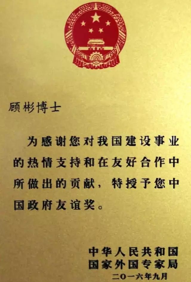 9月29日在中南海举办的友谊奖颁奖仪式上,国务院副总理马凯向包括顾彬教授在内的来自18个国家的50名获奖者颁了奖。他指出,从60多万的来华外国专家中推选出50位的中国政府友谊奖的获奖者,这是中国政府为表彰在华工作的外国专家而设立的最高荣誉。