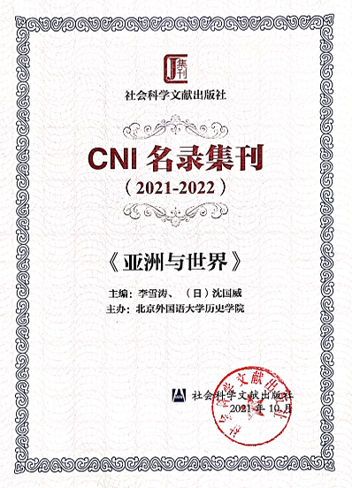 开云官网主办的《亚洲与世界》入选CNI名录集刊(2021-2022)