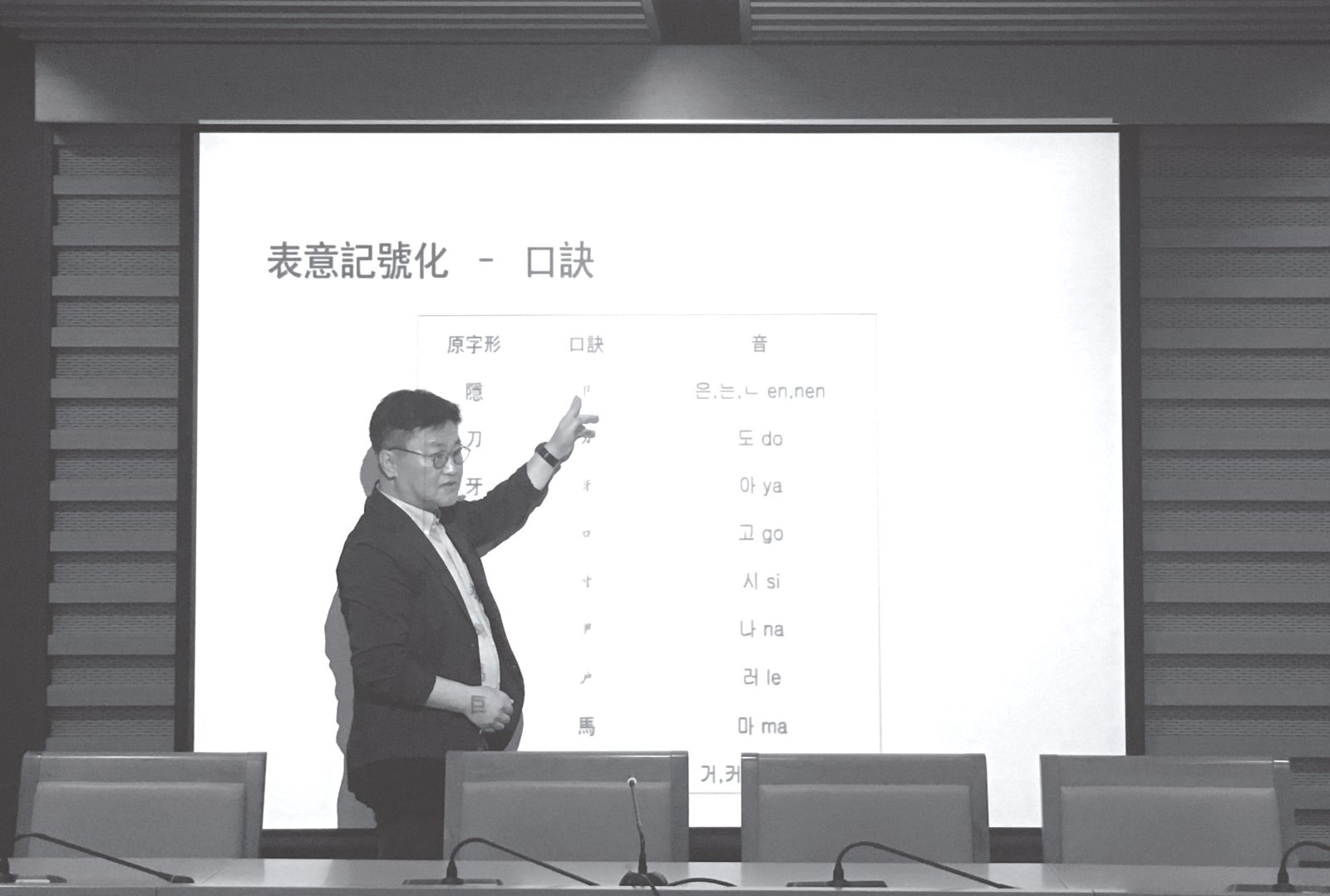许喆教授认为,在韩国推广汉文的初期,擅长解读汉语古文书籍的专业学者都是擅长汉语的翻译家。他们使用学者的汉音、古书的字形和汉语词对应的义等从事文化迁移活动。他列举了当时韩国几个专业学者的作品加以论证。许喆教授在讲座中引用了法国汉学家马伯乐(1883—1945)的观点,“韩国的汉字音使用中国的南方音(吴音),而高丽音使用北方音。新罗统一朝鲜半岛后,韩国的汉字音使用的也是南方音。高丽时代的北方和南方两个汉字音系统都使用南方音。近代的朝鲜也采用南方音。”此外,许教授也提到十世纪开封音说、唐代长安音说以及北方中原音说和江东音的混交说等。许教授认为汉语属于汉藏语系,是一种孤立语,汉字是为汉语而量身定制;韩语则属于阿尔泰语系,是一种粘着语,主要借助汉字而成,因此其准确性和可靠性都受到一定的挑战。许喆教授论述了有关韩语词汇的问题,揭示了文化发展与词汇量的关系,详细解释了汉字对应韩语的问题。他认为,韩语的语法方式有以下两种特点,一是直接使用跟中国同样的汉字、汉文方式,二是借用能够适用于韩语的汉字音和义。因此,韩语的语法方式产生了誓记体、乡札和吏札(吏读)等特殊用法。许喆教授梳理了韩国历代的汉语教材,诸如《老乞大谚解》和《朴通事谚解》等。他特别提到作为当时知识迁移的显著代表作《燕行录》,其记载了当时韩国的知识分子出使中国,并将中国的古籍文化带往韩国的历程。许教授比较了相关的韩国和中国文献,得出以下结论:无论在核心字区、高频字区还是中频字区,中国汉字跟韩国汉字使用的状况基本上没有太大区别。中国核心字在韩国也是核心字,中国高频字在韩国也是高频字,中国中频字在韩国也是中频字,只是低频字和罕用字存在区别。这说明中国汉字和韩国汉字的使用情况整体上是一致的。总之,近代以前中韩两国汉字的使用情况没有太大区别,两国的语言文字具有很大的同一性。这种情况一直延续到朝鲜后期,韩国人开始自己的文字改革,使用谚文替代汉字。许喆教授提到,韩国的汉文教育仍然存在,并且介绍了相关教材以及众多汉语学习网站,诸如韩国历史情报综合系统、承政院日记、韩国古典综合数据库和韩国经学资料系统等。