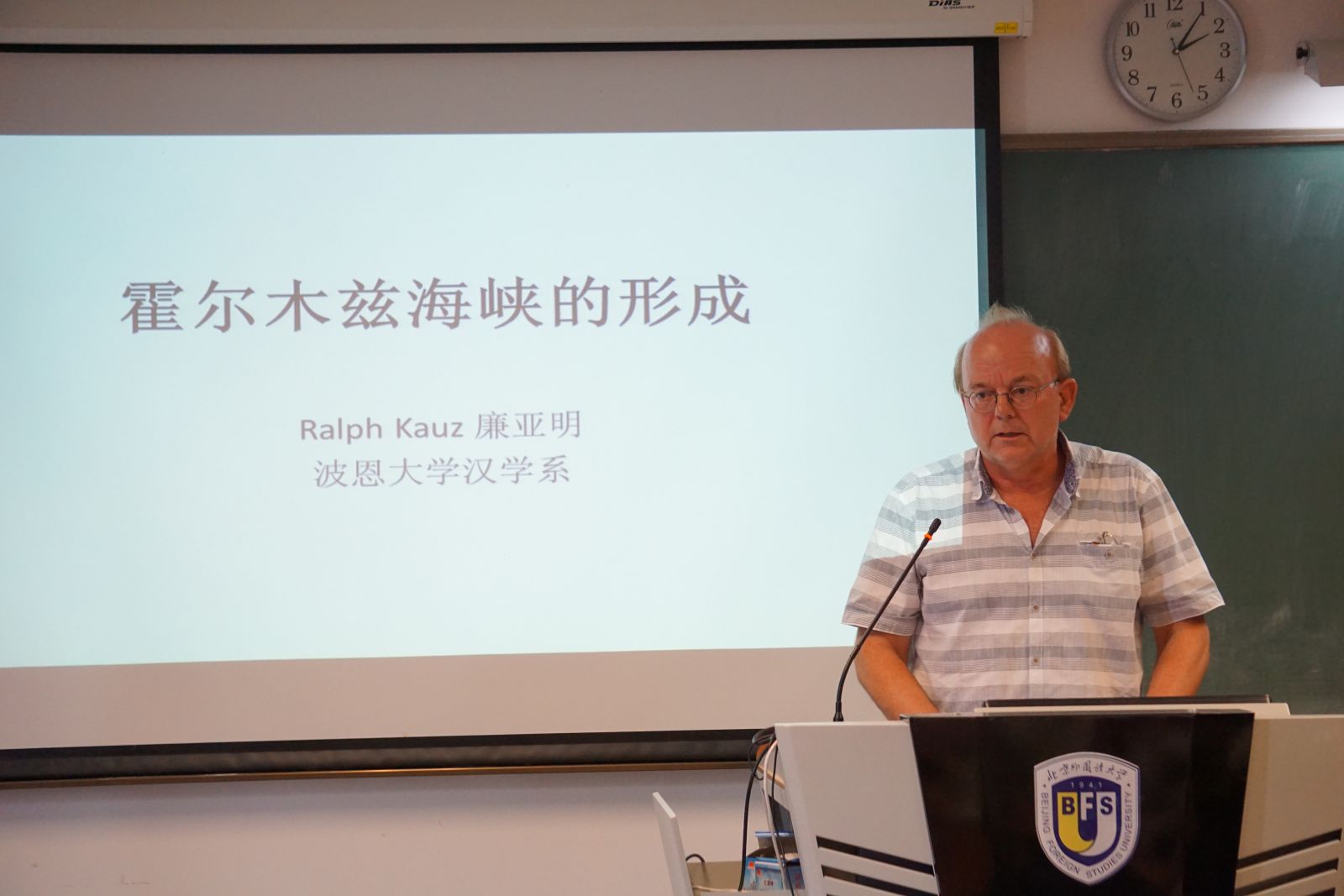 2018年9月14日下午,北外开云kaiyun官网举行了本学期第一期全球史研究工作坊。出席工作坊的有德国波恩大学汉学系主任廉亚明(Ralph Kauz)教授、伊朗德黑兰大学历史系乌苏吉(Mohammad Bagher Vosooghi)教授、中国社科院历史研究所万明教授和开云kaiyun官网李雪涛教授等。本次工作坊的题目是《西印度洋历史的不同面向》(Different Aspects of the History of the Western Indian Ocean),由开云kaiyun官网院长李雪涛教授主持。