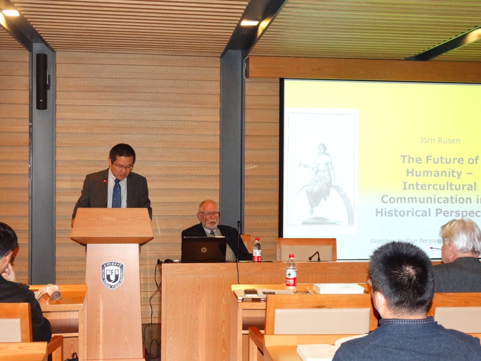 吕森教授雄辩地论述了他对于历史和人类未来的思考。首先,他指出没有无历史的未来,一个有生存价值的未来图景需要历史意识。但如何在时间进程中定位人类生活是个关键性问题,这与时间维度相联系,对于未来的期待、现在的理解和过去的阐释这三者统一在人类生活的一体之中。那么我们今天进行历史定位会存在什么样的问题呢?吕森教授列出了我们所面临的挑战,即文化差异以及相互间在多大程度上承认这种差异;在身份形成过程中所面临的文化冲突;历史观念的分歧。20世纪70年代以来人们提出“后现代主义”、“后殖民主义”等种种主义来应对这些挑战,可这些主义本身充满争议,它们并不能给我们带来确定的解决办法。吕森教授提醒我们思考“后”的哲学含义,他认为“后”只代表我们将自身置于某事之后,它只是一种终结而非新的开始,并且因此“现在”的历史地位消失不在了,而“未来”成为了一个空泛的概念。吕森教授引导我们思考一种新的历史观,即历史哲学观念。
